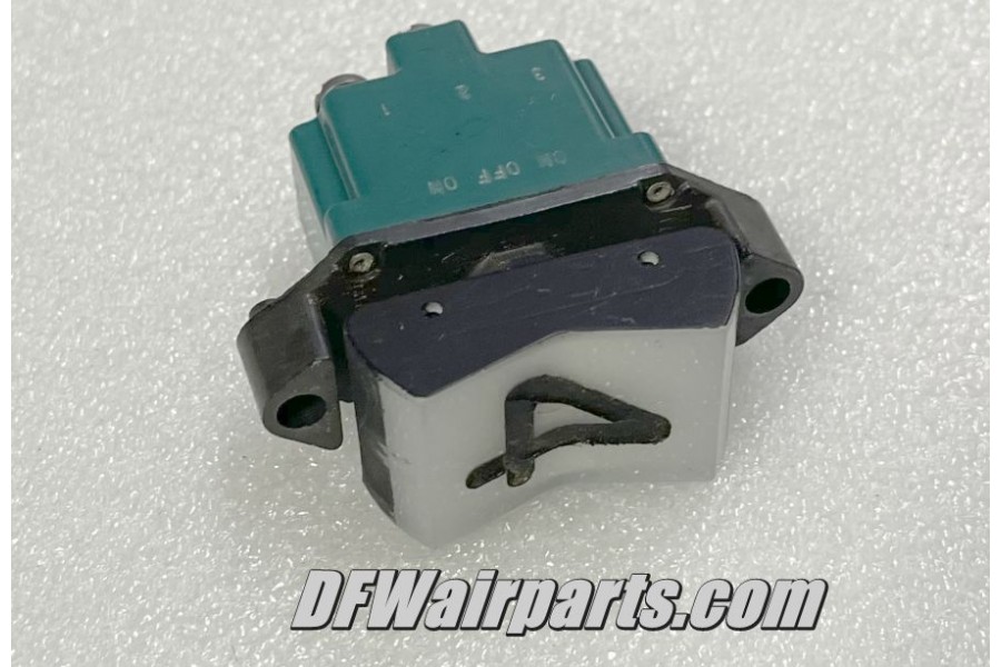 Three Position, ON / OFF / ON, Engine 4 Aircraft Toggle Switch. P/N 2TP25-1. It was removed from a salvage aircraft.