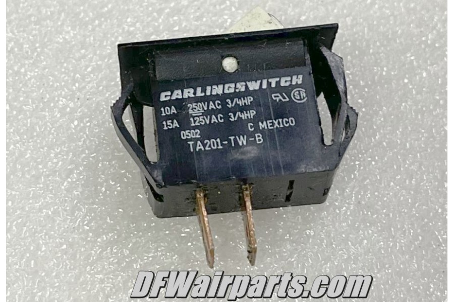 Cessna 150 / 152 / 172 / 182 Aircraft Rocker Switch. Manufactured by Carling. P/N TA201-TW-B. It was removed from a salvage aircraft.